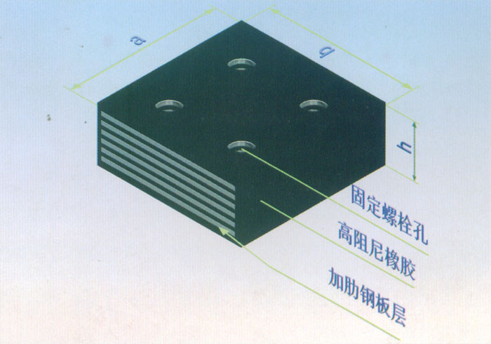 ZX型軸向減震橡膠支座結構圖右圖,是為了滿足豎向荷載不高于4000KN的節(jié)點而設計的。該支座由多層橡膠片和加勁鋼板經(jīng)加溫、加壓硫化而成,具有相當?shù)呢Q向剛度,從而能夠支撐上部構件賦予的荷載。受力情況下,通過支座局部變形帶來的耗能起到減震作用。支座通過固定螺栓孔,借由螺栓實現(xiàn)和上下構件的固定。本支座有一定的豎向轉角功能。