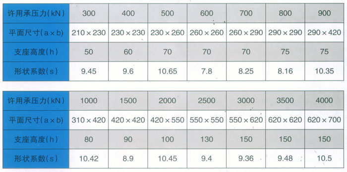 本系列支座不存在水平位移,主司豎向減震之功能;因為有螺栓限位,不考慮支座的水平剪切,故下表2的參數(shù)較為簡單。這種支座是比較常用的類型,在中南林業(yè)科技大學、深圳外國語學校等工程的設計過程中,我們根據(jù)工況需求配合有關方面進行了創(chuàng)造性的深化設計。