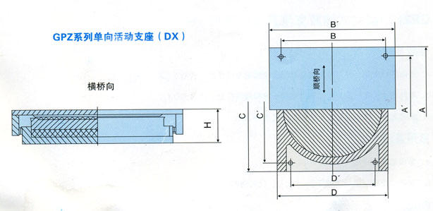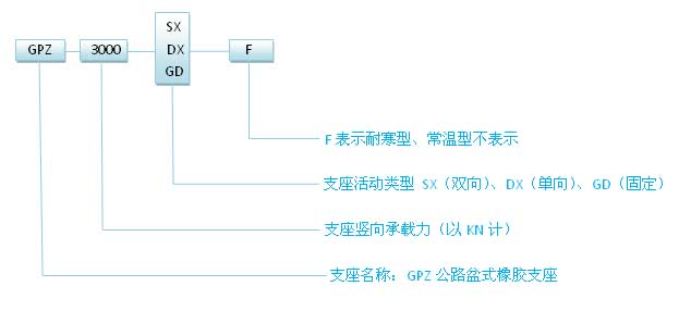 性能及分類 a 、雙向活動(dòng)支座:具有豎向轉(zhuǎn)動(dòng)和縱向與橫向滑移性能,代號為SX 。 b、單向活動(dòng)支座:具有豎向轉(zhuǎn)動(dòng)和單一方向滑移性能,代號為DX 。 c、固定支座:僅具有豎向轉(zhuǎn)動(dòng)性能,代號為GD。