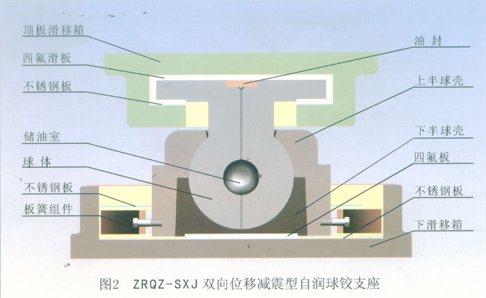豎向壓力的傳遞是通過頂板滑移箱,不銹鋼板,聚四氟乙烯滑板,球體,下半球殼,受壓聚四氟乙烯滑板,不銹鋼板依次疊加傳至下滑移箱。
